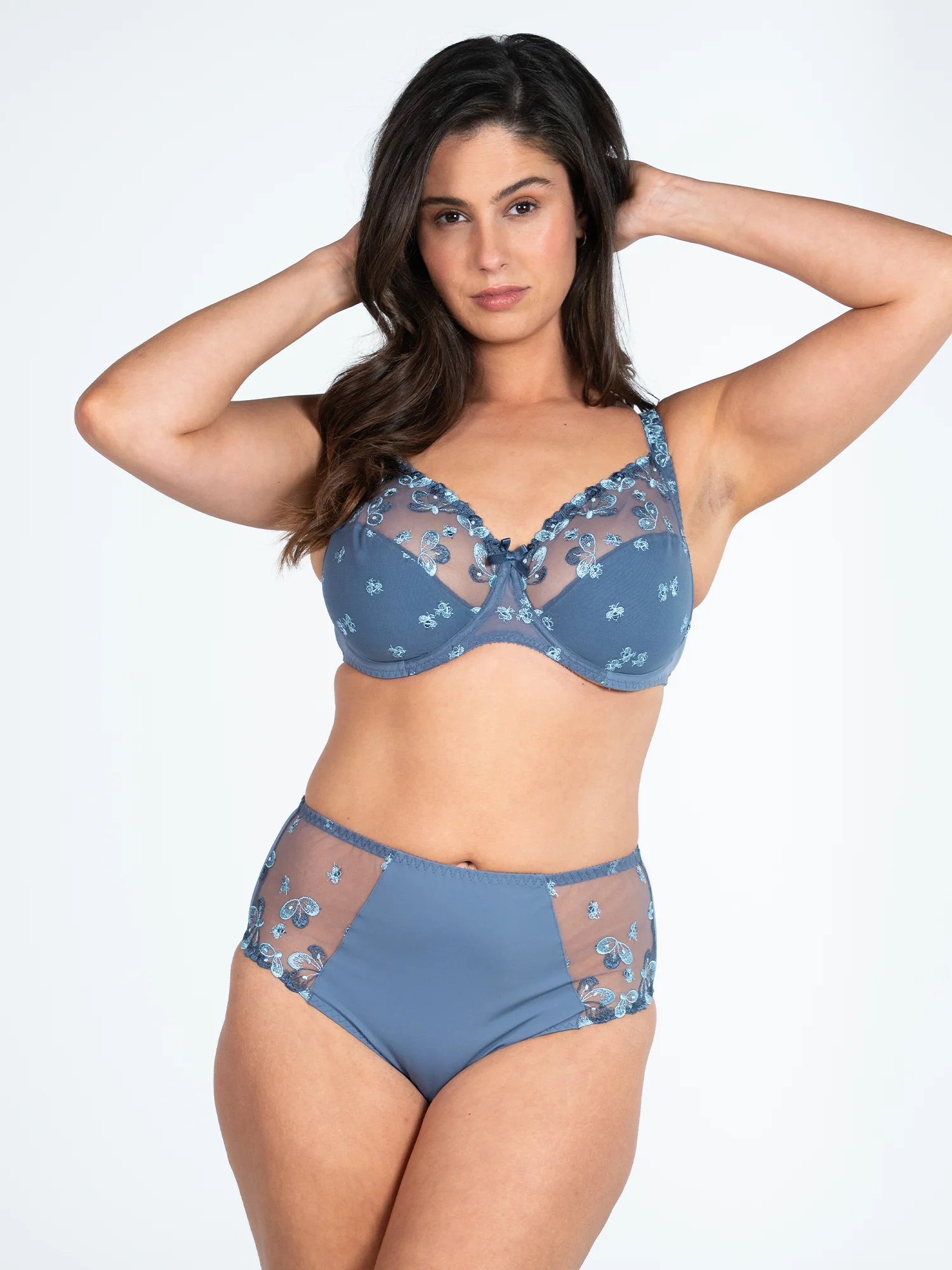 Een comfortabele hoge tailleslip met elegante, verfijnde broderie.